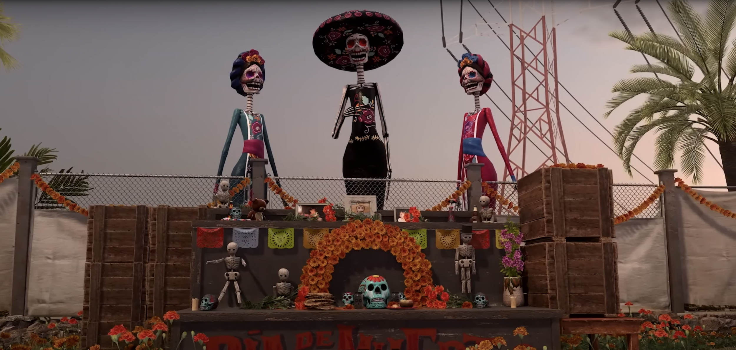 Long, fly-through shots of the new map, featuring the outside decorations, catrinas, ofrendas, etc.